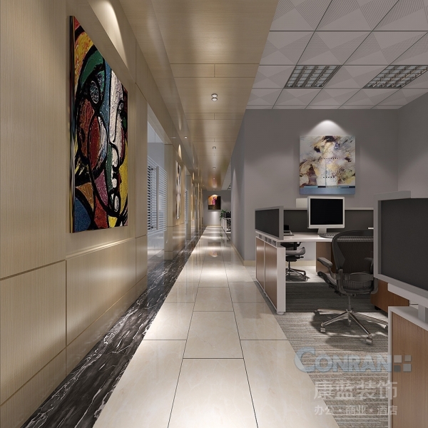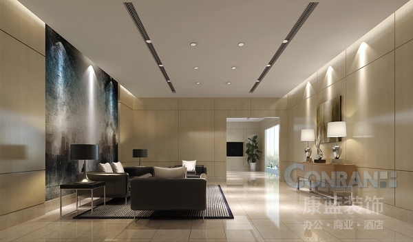 縱觀整個(gè)太平金融大廈辦公室設(shè)計(jì)案例,無論是哪個(gè)空間,都能看到對抽象繪畫藝術(shù)的運(yùn)用。在具象而規(guī)整的建筑設(shè)計(jì)中納入無論是色彩還是線條都無邊界性規(guī)則的抽象藝術(shù),是康藍(lán)設(shè)計(jì)一次大膽的嘗試,事實(shí)證明,這是一次成功的嘗試,將裝飾設(shè)計(jì)這一門類升華到藝術(shù)設(shè)計(jì)的高度。