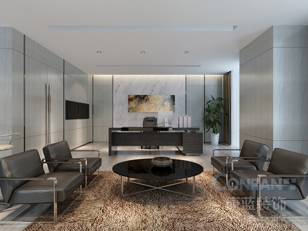 公司的總經(jīng)理辦公室除了日常辦公,也必須具備會見重要訪客的功能,因此打造磅礴大氣的低奢感是康藍(lán)設(shè)計(jì)本次為總經(jīng)理辦公室所定制的目標(biāo)。